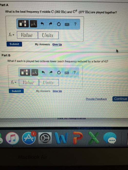 Solved What is the beat frequency if middle C(262 Hz) and