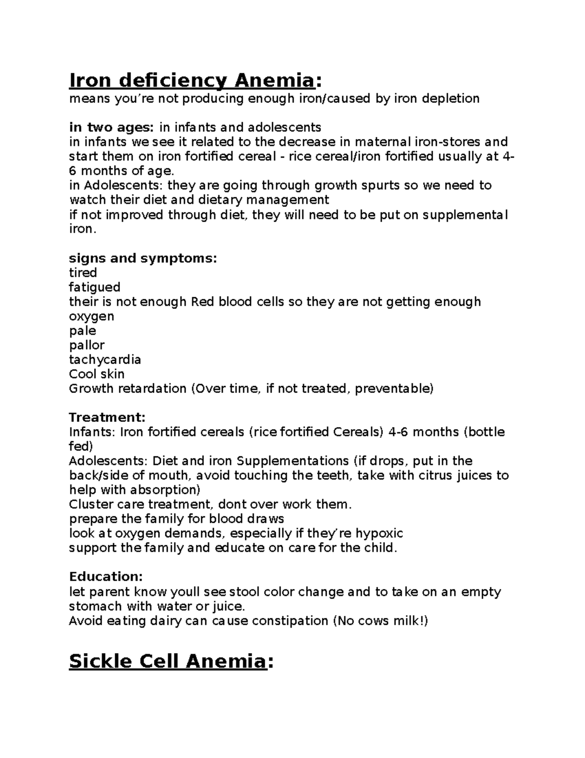Exam 4 Notes Review 2 Iron deficiency Anemia means you’re not