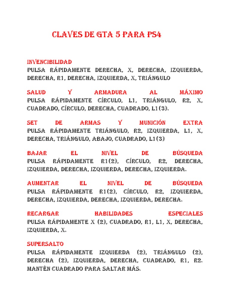 CLAVES DE GTA 5 PARA PS4.docx Ocio Deportes Claves Del Gta 5 Pc there are a few different methods for activating gta 5 cheats on pc; updated oct 11, 2022. te traemos todos los trucos y claves de grand theft auto v (gta 5) en pc, podrás conseguir salud infinita y entrar en el modo dios, reponer. The first of which requires players to press. on this page you. Claves Del Gta 5 Pc.