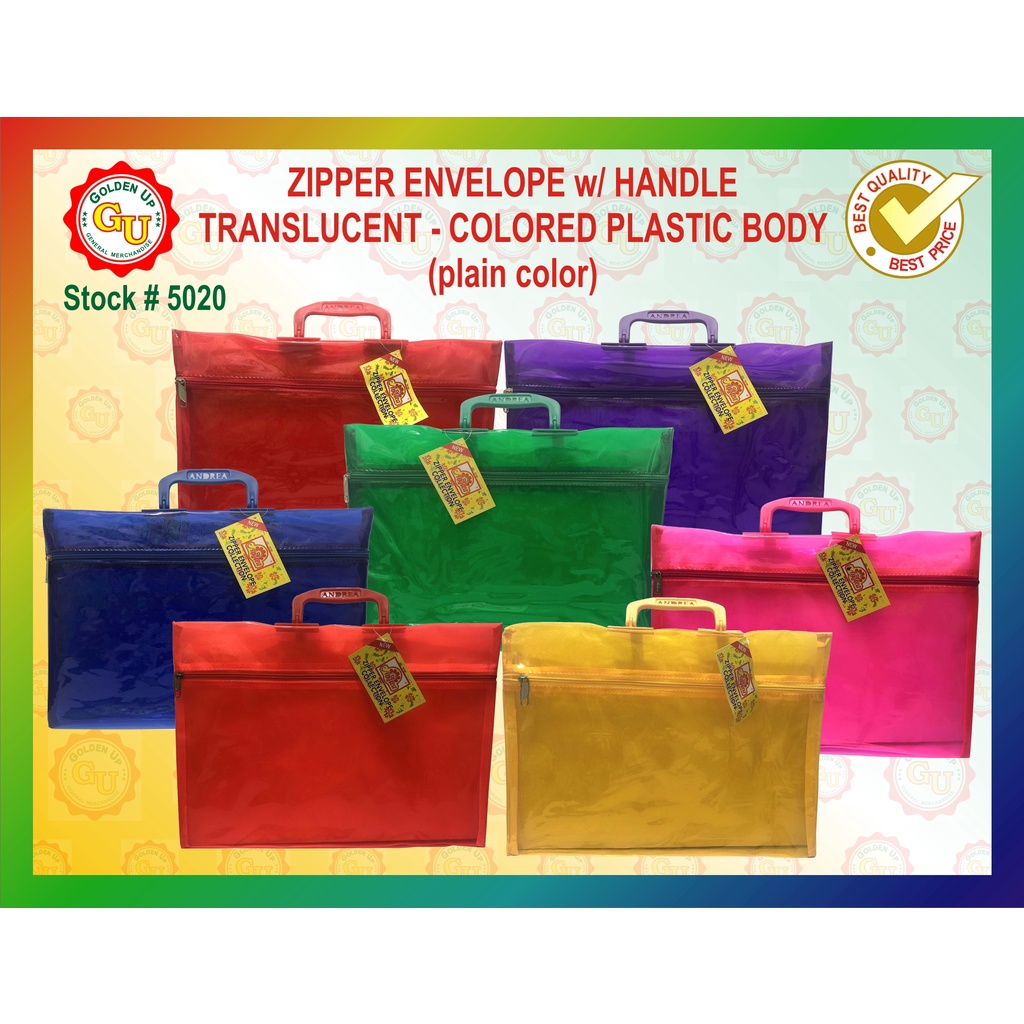 5020 Translucent Colored Plastic Zipper Envelope with single handle