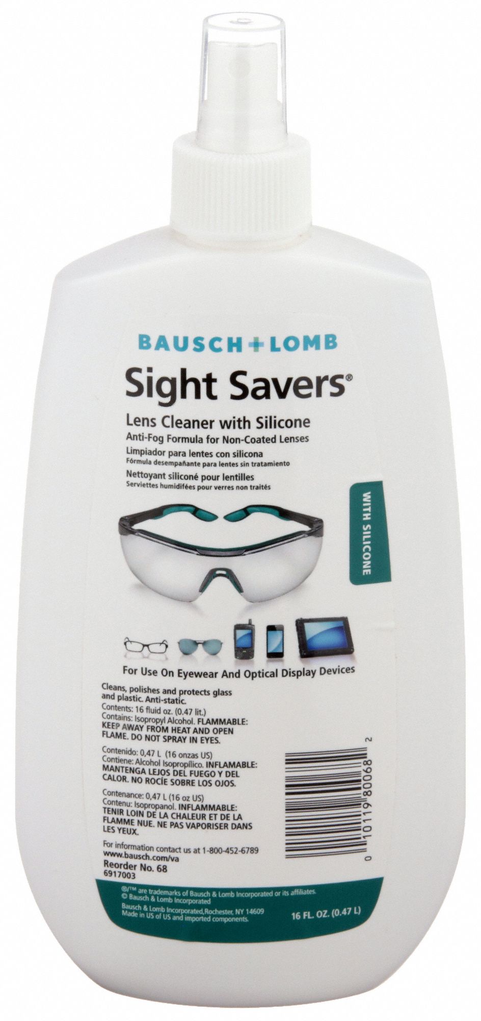 AntiFog/AntiStatic, Silicone, Lens Cleaning Solution 4T93268