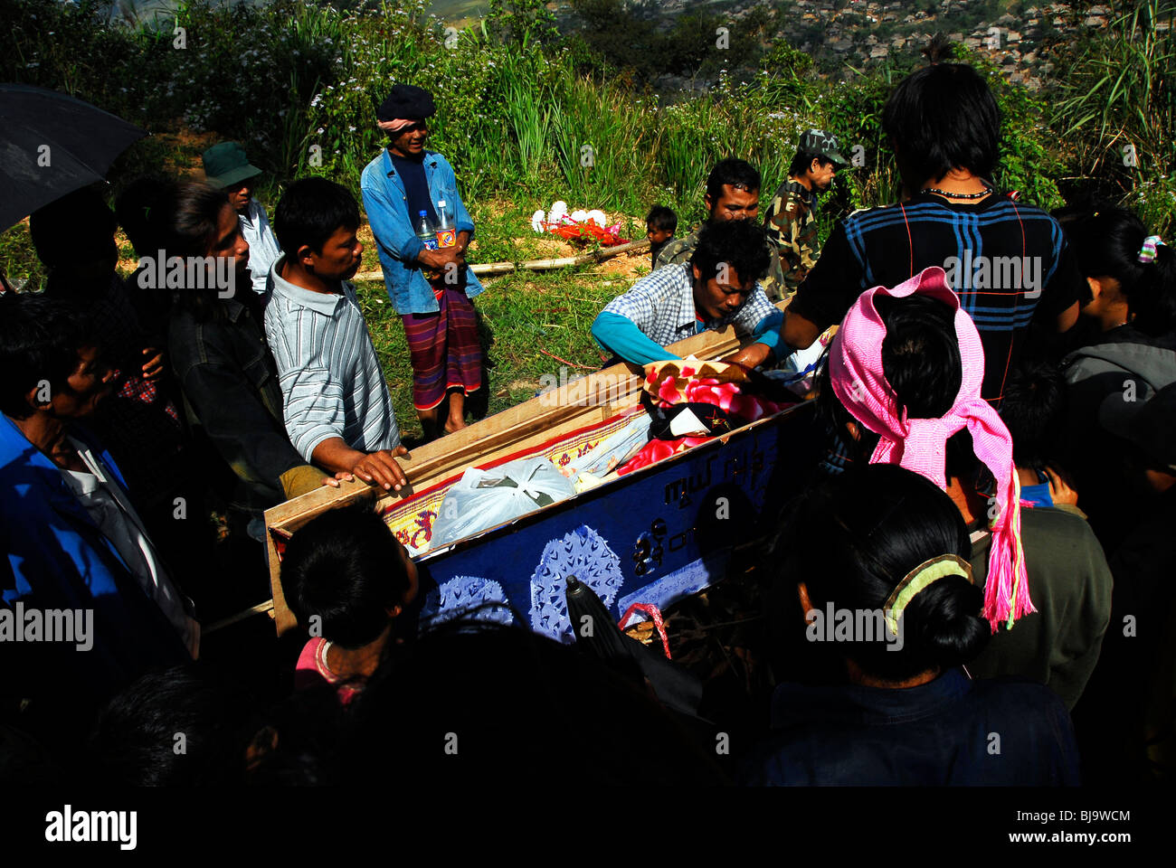 open coffin on funeral pyre ,umpium refugee camp(thai burmese border