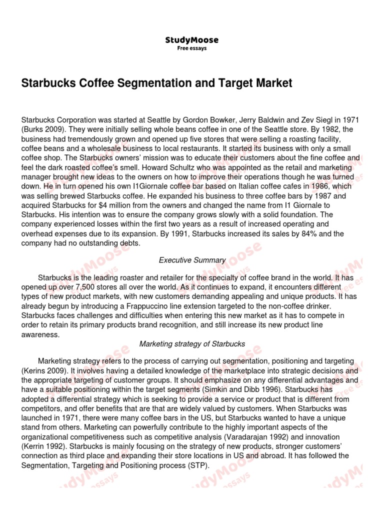 Starbucks Coffee Segmentation and Target Market PDF Market