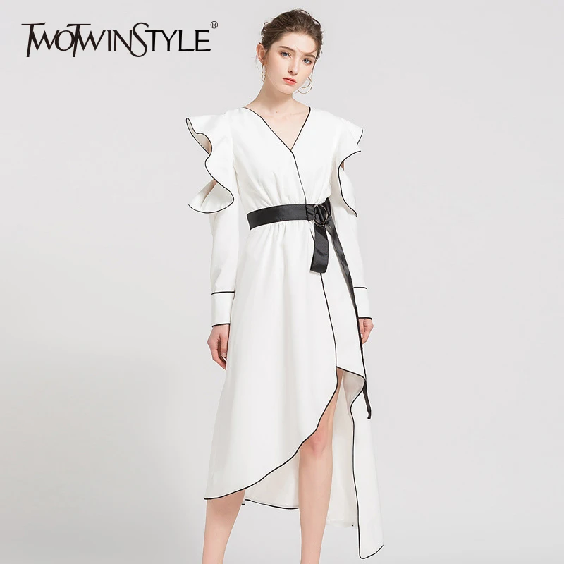 Buy TWOTWINSTYLE Sashes Dress For Women V Neck Ruffles