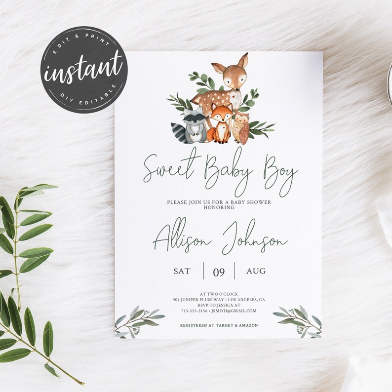 Editable Woodland Baby Shower Invitation Woodland Boy Baby Etsy