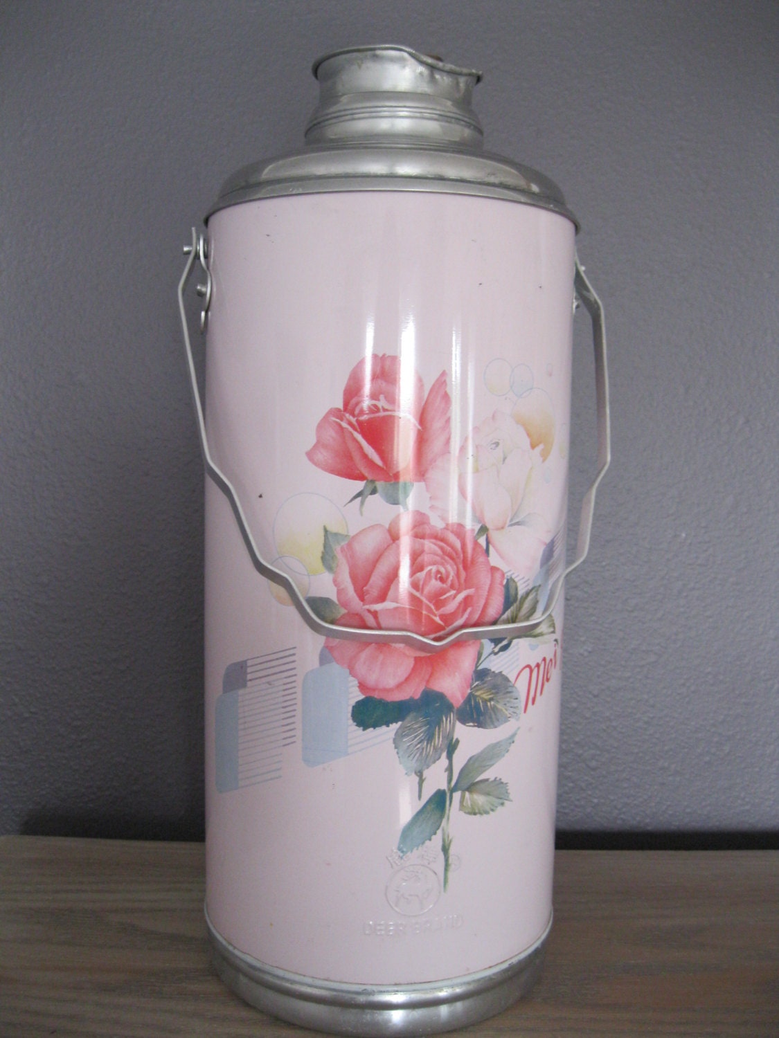 Vintage Deer Brand Thermos With Roses Etsy Thermos Deer Brand vintage chinese thermos made by deer brand. stainless steel thermos keep warm or cold water lasting approximately 6 hours. check out our deer brand thermos selection for the very best in unique or custom, handmade pieces from our drinkware shops. Great cherry blossom screen print on a pink background with aluminum carry handles and lid. Keeps liquids. Thermos Deer Brand.
