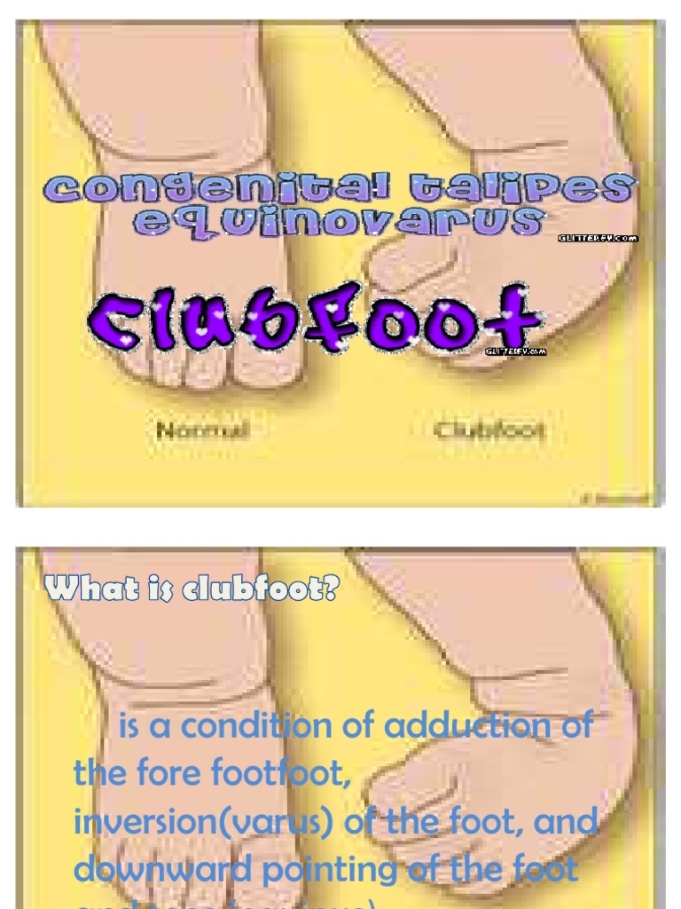 CLUB FOOT jasmine ouseph CLUB FOOT INTRODUCTION Talipes Equinovarus Talipes Equinovarus Description Club foot (also called talipes) is where a baby is born with a foot or feet that turn in and under. In club foot, 1 foot or both feet point down and inwards with. Clubfoot is a deformity (birth defect) in which your baby’s foot or feet turn inward. Clubfoot, also known as congenital talipes equinovarus, is a common idiopathic. Talipes Equinovarus Description.