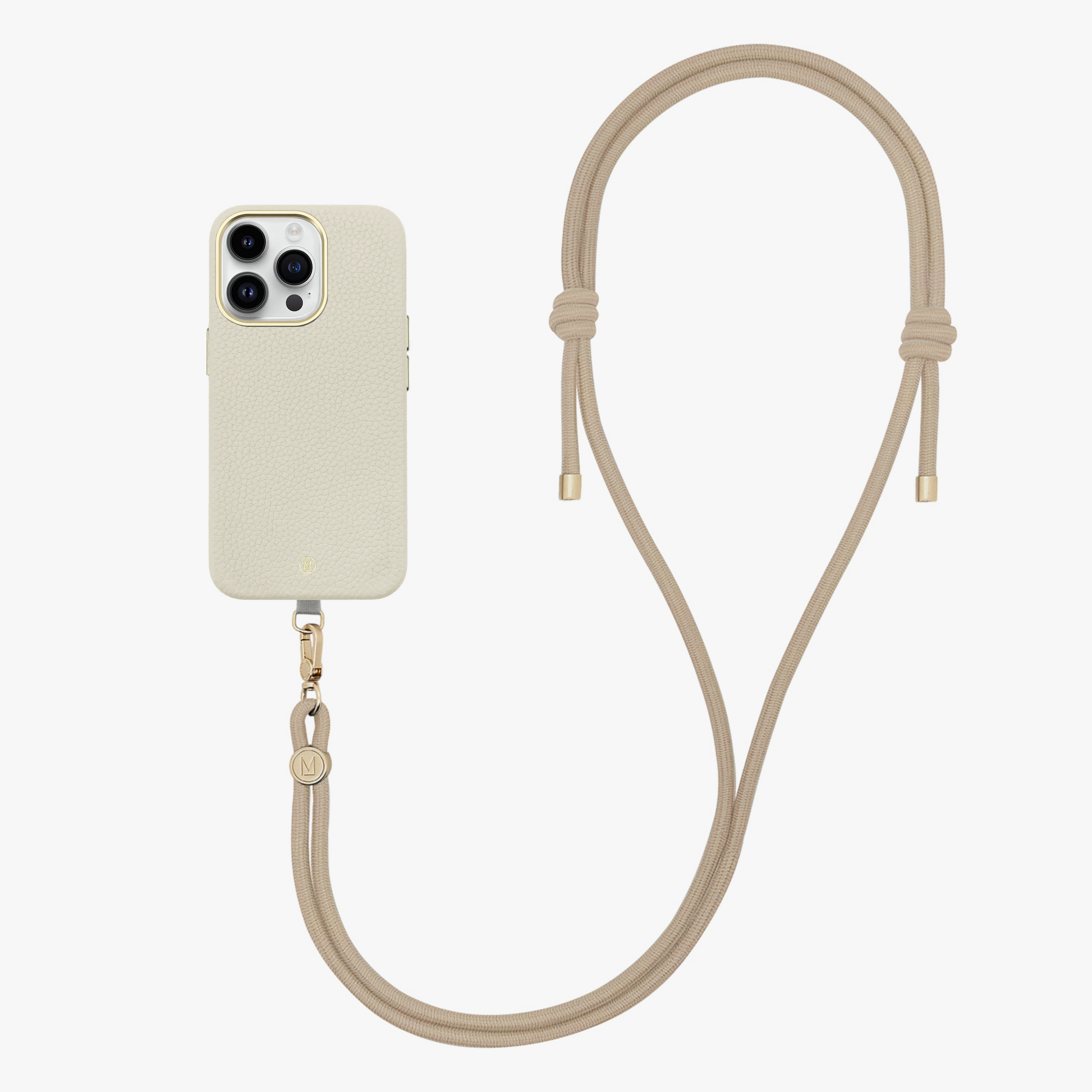 iPhone 16 Pro Leather MagSafe Case with Crossbody Rope Strap (Solid Co