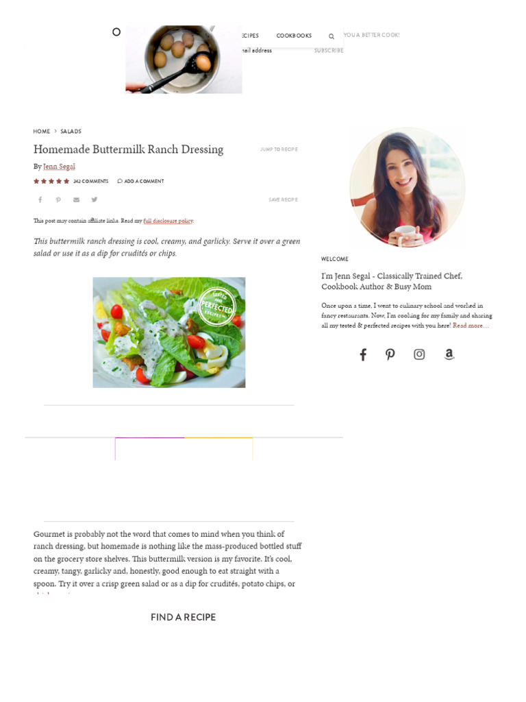 This document provides a recipe for homemade buttermilk ranch dressing. Whip up a batch of homemade ranch dressing and savor its legendary creamy, tangy,. It begins with an introduction from the author jenn segal, who is. This buttermilk variation of my standard ranch dressing recipe is one of my go. This buttermilk version is cool, creamy, tangy,. 1/4 cup mayonnaise (best quality such as hellmann's.