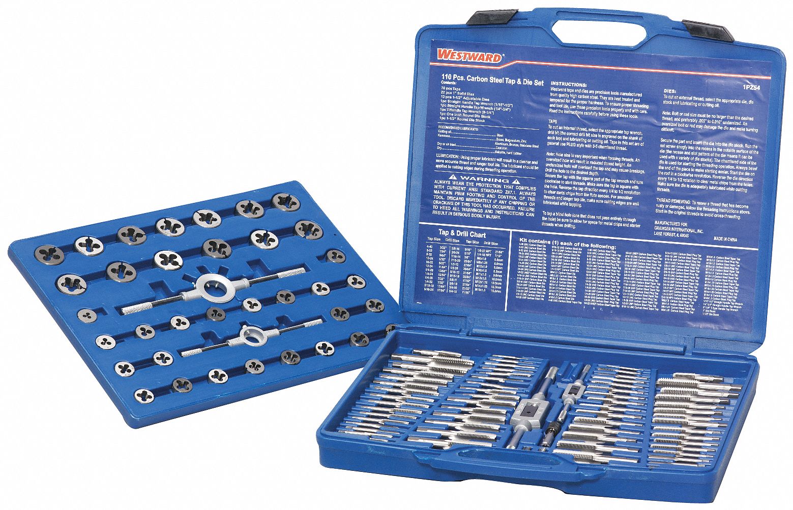 WESTWARD Tap and Die Set 110 Pieces, 440 Min. Tap Thread Size, M18 Max. Tap Thread Size