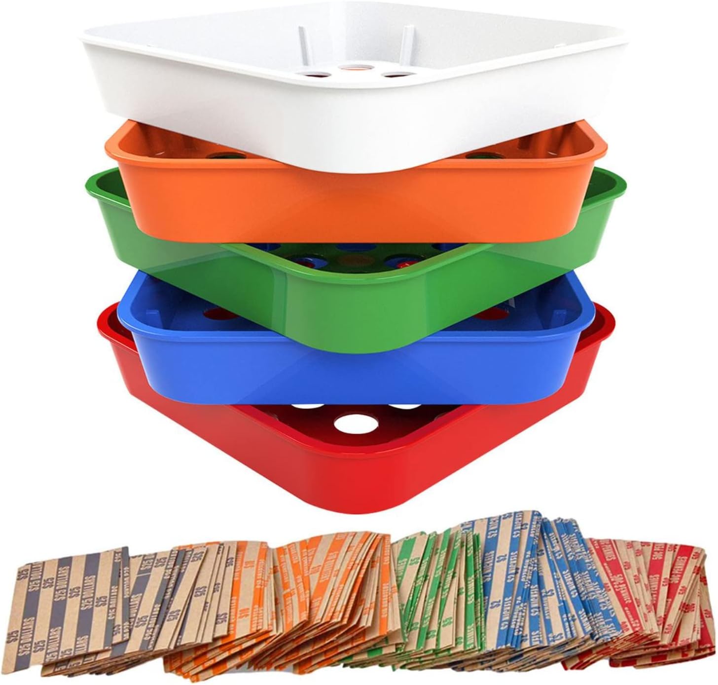 Coin Sorter Tray essential 60 pcs assorted preformed coin wrapper rolls with coin counter tubes, coin sorters trays and coin wrapper crimping. 4/5 (1.035) 4/5 (1.035) Check each product page for other buying options. Sort your pennies, nickels, dimes, quarters, half dollars and dollar coins with our 6. Coin Sorter Tray.