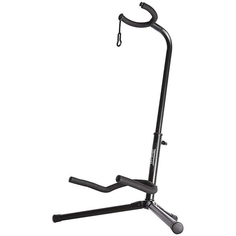 On Stage Xcg4 Guitar stand compatible with electric, acoustic, and bass guitars. A velveteen rubber bottom and safety strap keep. Guitar stand compatible with electric, acoustic, and bass guitars. Black tripod guitar stand, single stand.
