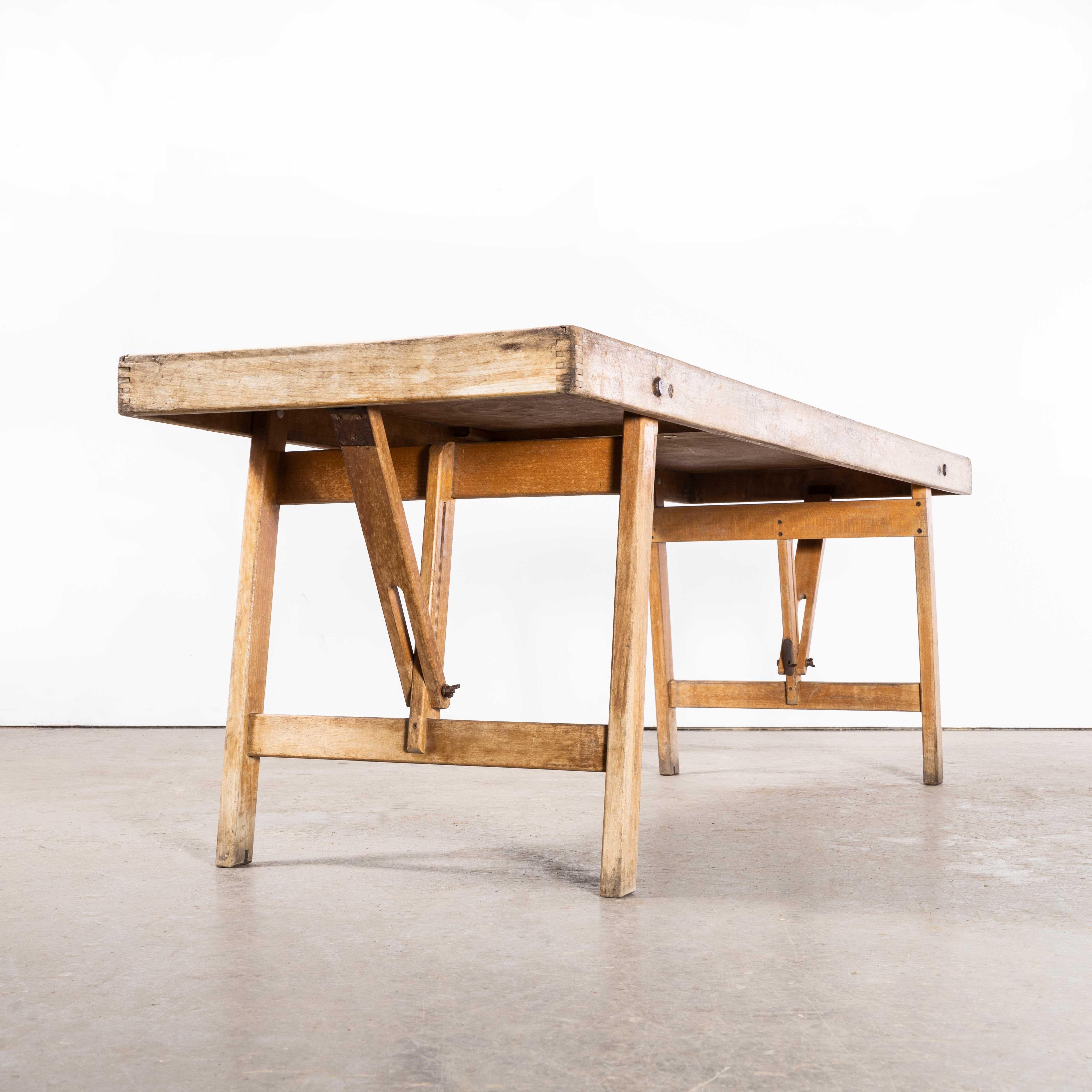 1950's Laminate Top Trestle Table Craft Console Table (7) For Sale at 1stDibs Laminate Trestle Table Tops Featuring two 18 leaves that allow you to expand the table top to 96 for extra room for guests. High pressure laminate tables offered in a beautiful chestnut finish. A natural finish accents the beauty of the formica oak styled laminate, giving your decor a. Complete your restaurant, break room, or cafeteria with this table top and base configuration, available. Laminate Trestle Table Tops.