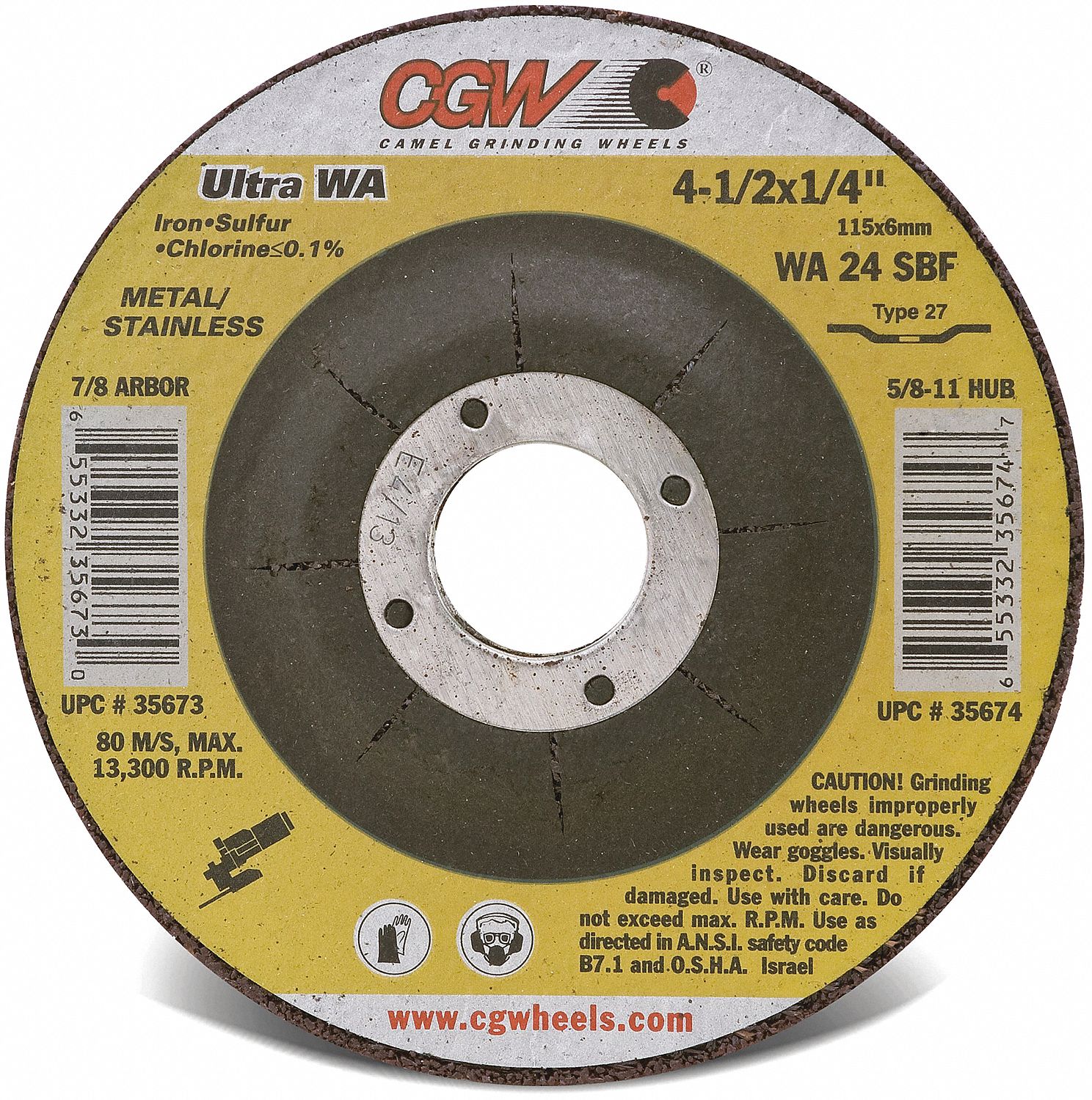 CGW ABRASIVES DEPRESSED GRINDING WHEEL,GRADE S,12,250 RPM,24 GRIT,TYPE
