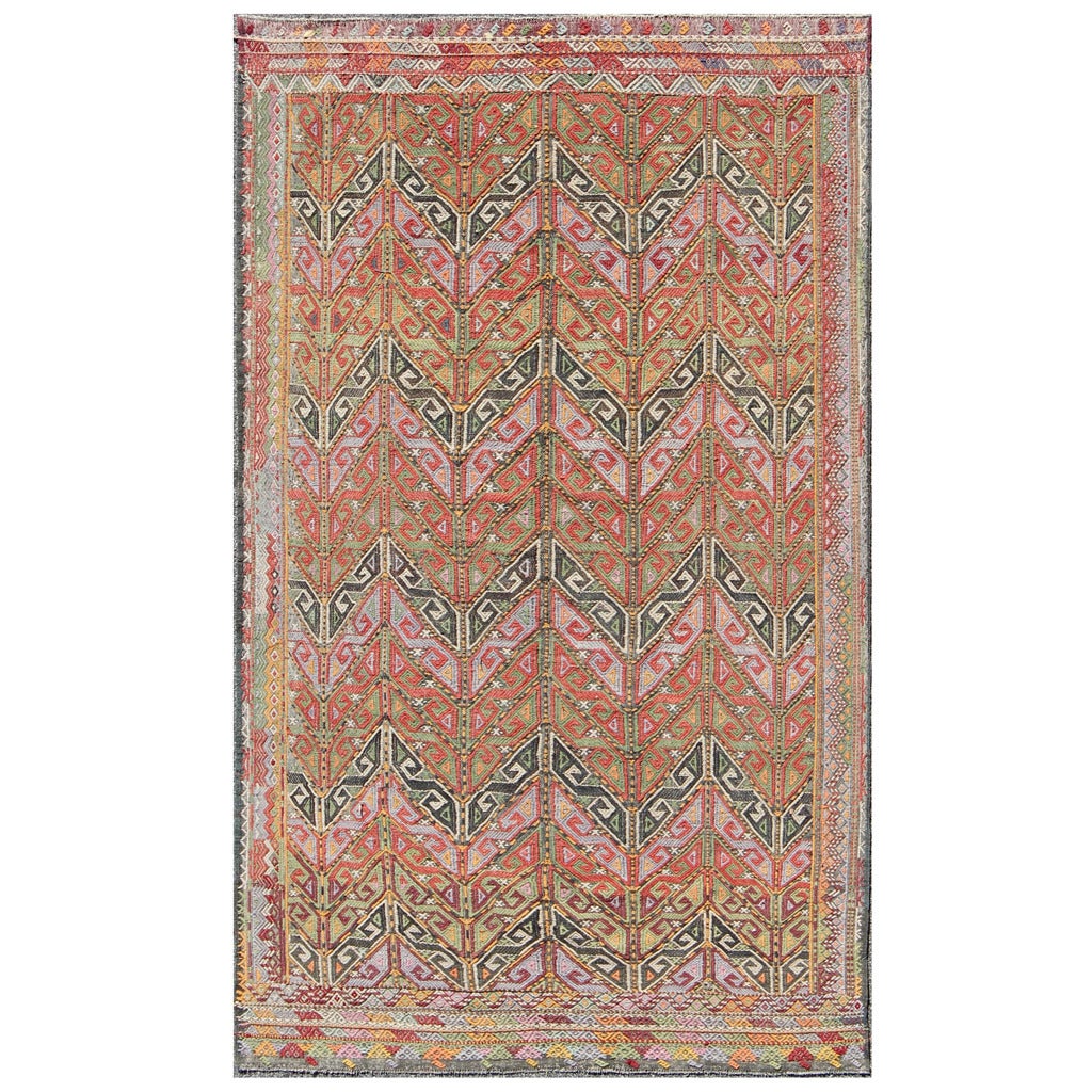 Vintage Embroidered Kilim Jajeem Rug For Sale at 1stdibs