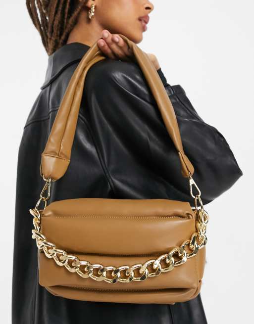 ASOS DESIGN puffed quilted shoulder bag in brown with chunky chain ASOS