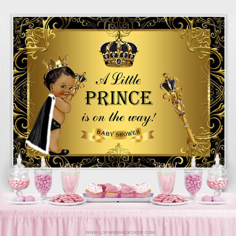 A Little Prince Black Gold Classic Baby Shower Backdrop Lofaris