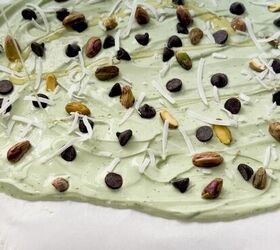 Frozen Yogurt Matcha Bark With Chocolate Chips, Pistachios & Coconut