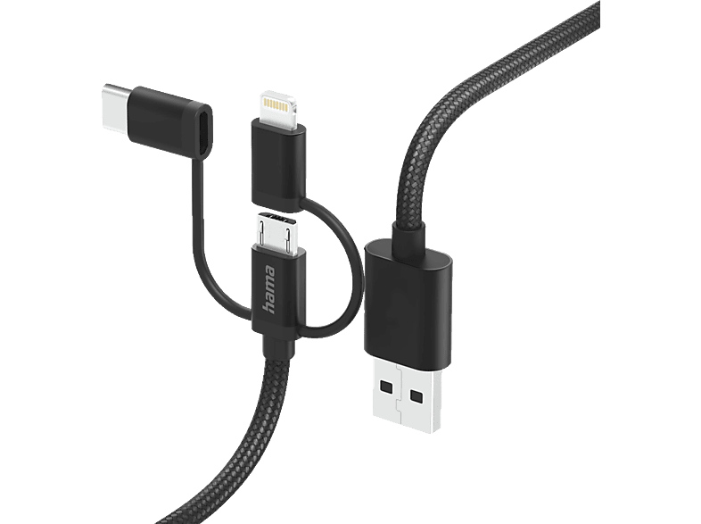 HAMA USBA auf MicroUSB, USBC und Lightning 3in1, Ladekabel, 1,5 m