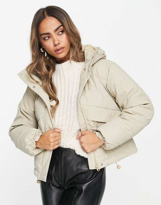 Pull&Bear quilted hooded jacket in stone ASOS
