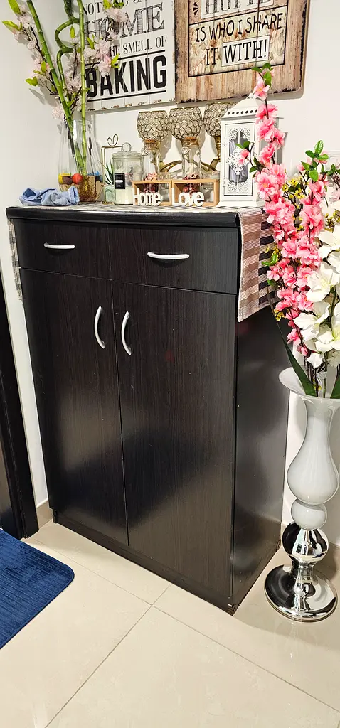 Shoe rack for sale.it's in good condition. Other than that, there is nothing broken or loose screws. No scratches well maintained easy to manage takes less space Shoe rack with mirror it is in a very good condition. In good condition apart from some scratches while shifting. Wooden shoe rack organize the shoes sturdy shoe cabinet with wide storage capacity cash on delivery