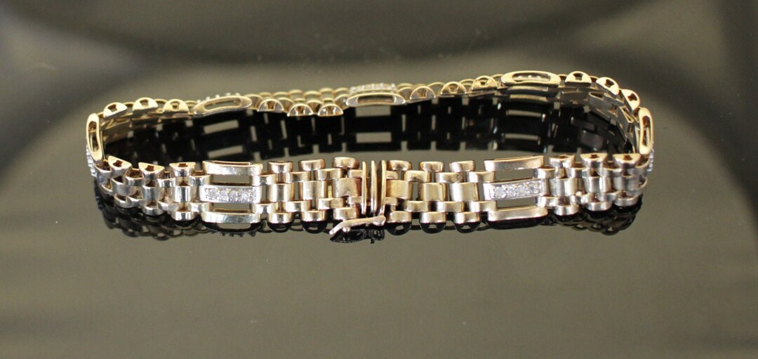 10k Yellow Gold & Diamond Men's Rolex Style Bracelet Etsy
