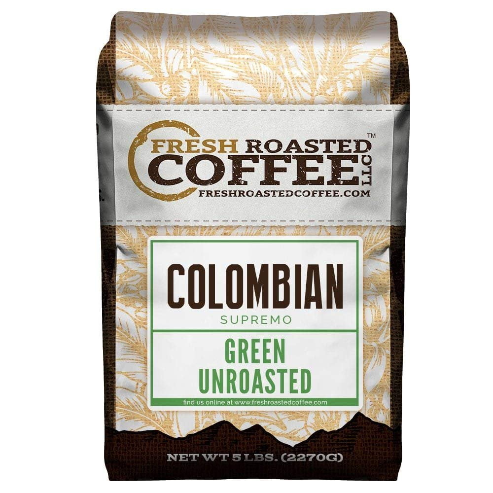 Fresh Roasted Coffee LLC, Green Unroasted Colombian Supremo Coffee Beans, 5 lb Bag