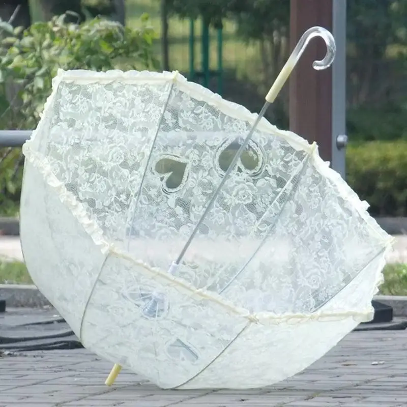 2019 New Transparent Lace PVC Umbrella with Exquisite Long Umbrella Cap
