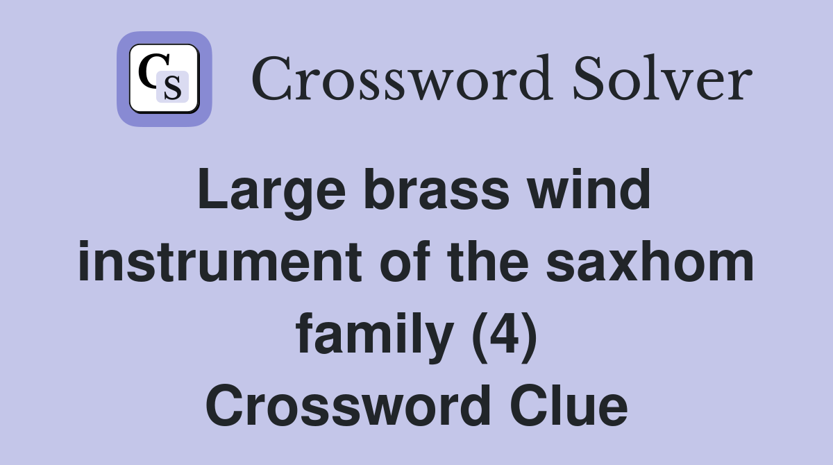 Large brass wind instrument of the saxhom family (4) Crossword Clue Answers Crossword Solver Large Brass Instrument Crossword Clue 4 Letters (i've seen this in another clue) We have found 40 possible answers for this. all crossword answers with 4 letters for big brass instrument found in daily crossword puzzles: the crossword solver found 30 answers to large brass instrument (4), 4 letters crossword clue. Here is the answer for the crossword clue large brass instrument. i believe. Large Brass Instrument Crossword Clue 4 Letters.