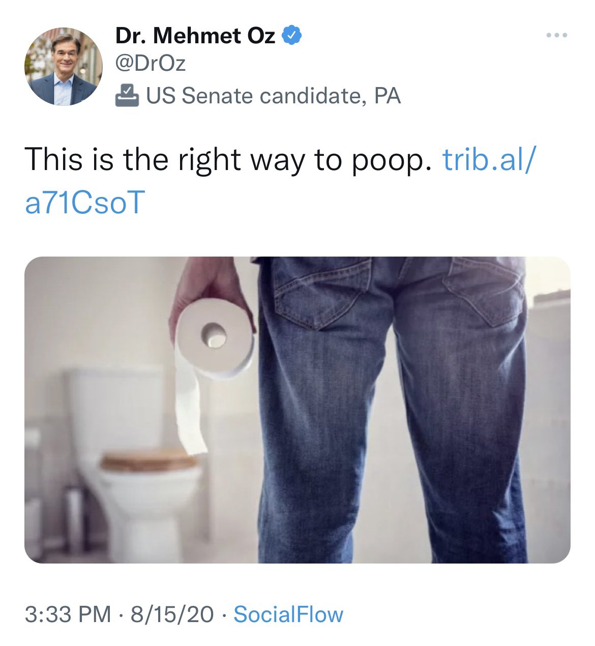 Dr. Oz Posting His Ls on Twitter "With jeans on https//t.co