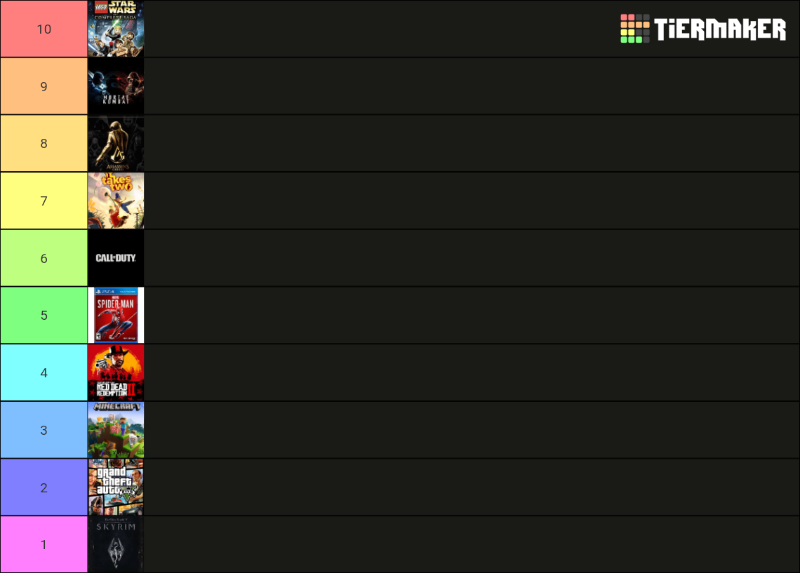 Top ten video games of all time Tier List Rankings) TierMaker