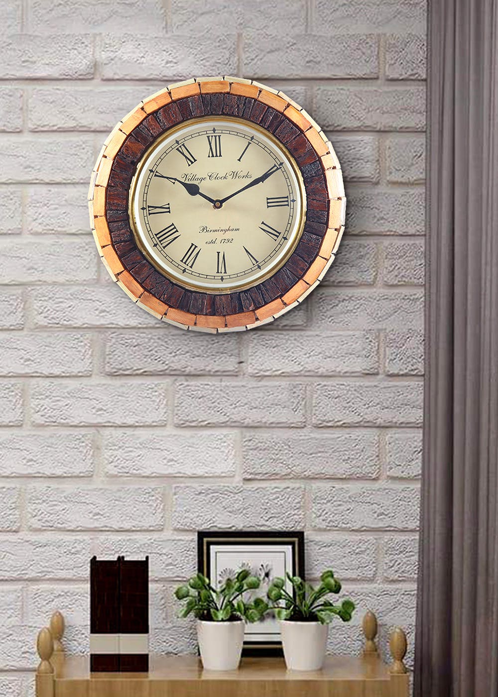Get Round Wooden Bricks Wall Clock at ₹ 3299 LBB Shop