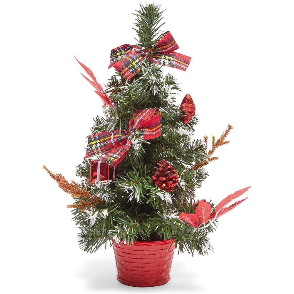 "18"" PreLit Tabletop Xmas Tree with LED Lights & Ornaments, Mini Tabletop Christmas Tree Pre Lit Lights up your desktop with this mini artificial christmas tree. Let it snow outside or inside your home with this festive king. Our tabletop christmas tree comes with clear led lights that are battery. Tabletop Christmas Tree Pre Lit.