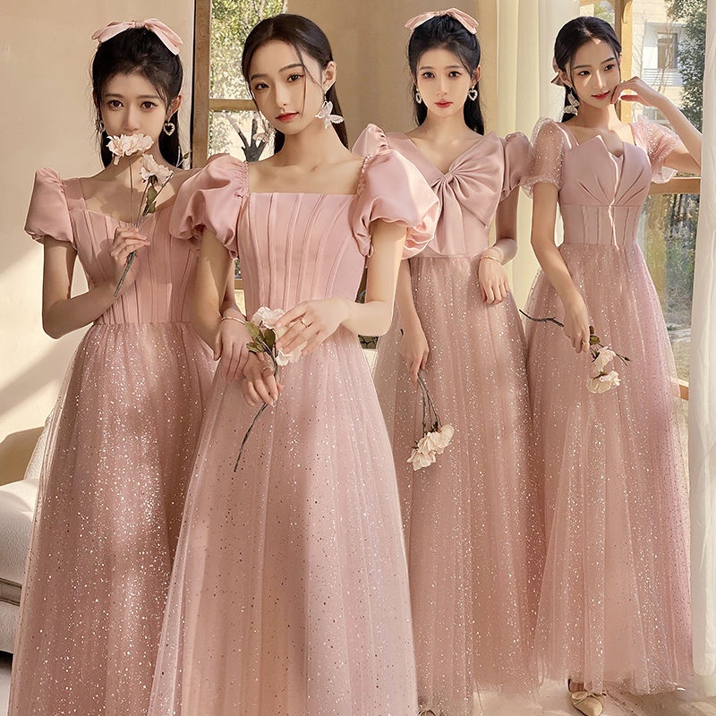 Korean Pink Bridesmaid Dress Gown Fairy Prom Evening Banquet Party Debut Dinner Dresses 20