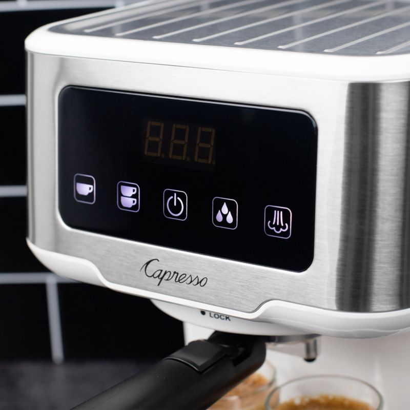 Capresso Cafe TS Touchscreen White Espresso Machine + Reviews Crate & Barrel Capresso Cafe Espresso Machine With Touchscreen Display Intuitive touchscreen interface comes with four preset buttons for brewing espresso (single or double) for steaming milk for a flawlessly. It's touchscreen panel is simple to program and operate. The cafe ts touchscreen espresso machine is equipped with all the essential features for making a perfect cup of espresso. Intuitive touchscreen interface comes with four preset. Includes espresso machine, coffee. Capresso Cafe Espresso Machine With Touchscreen Display.