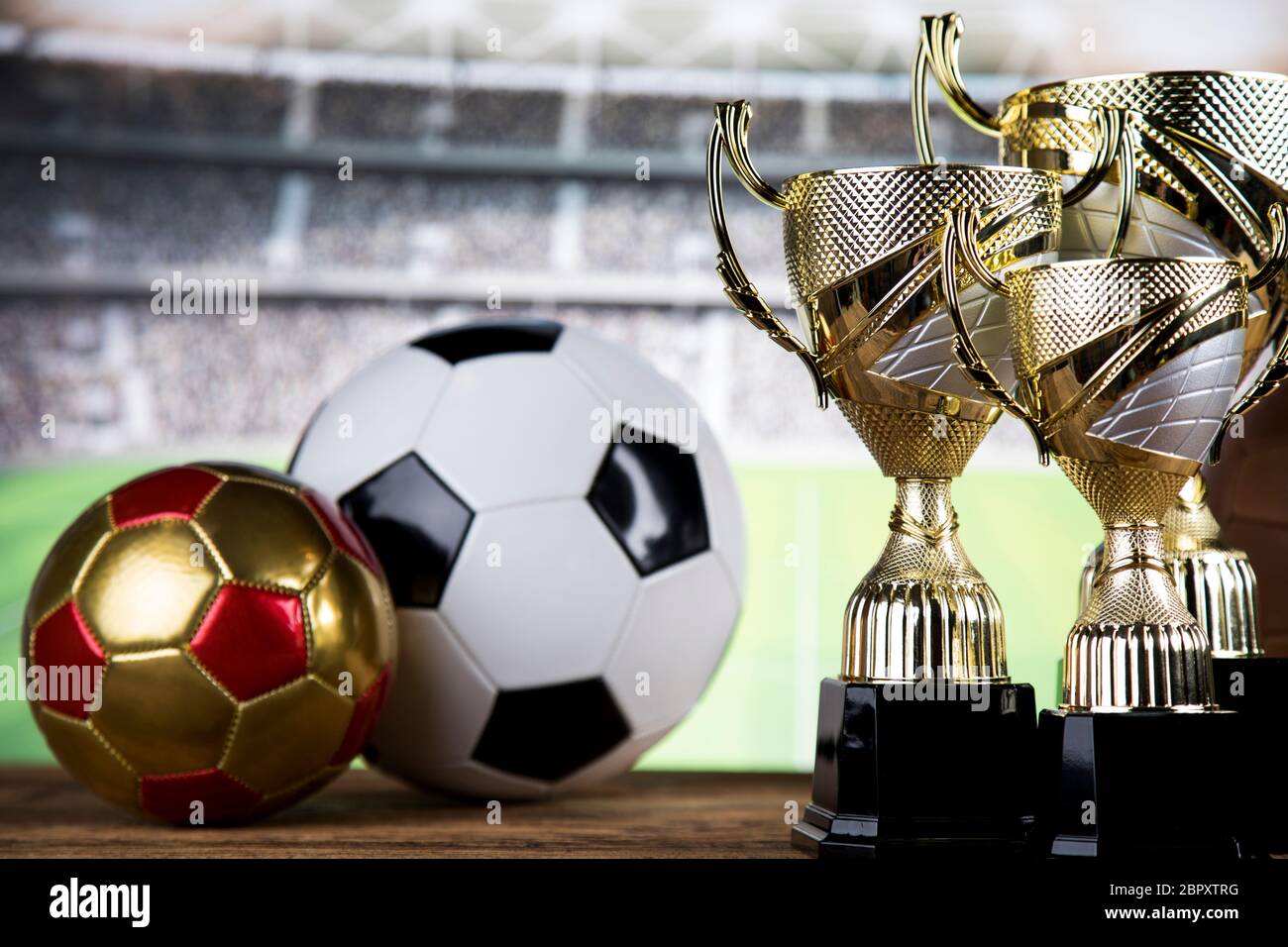 Winner trophy, Sport equipment and balls Stock Photo Alamy
