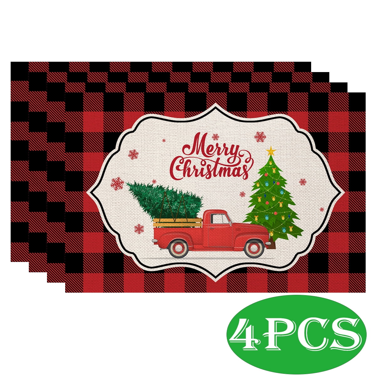 Christmas Placemats Set of 4 Xmas Buffalo Plaid Placemats for Xmas Day