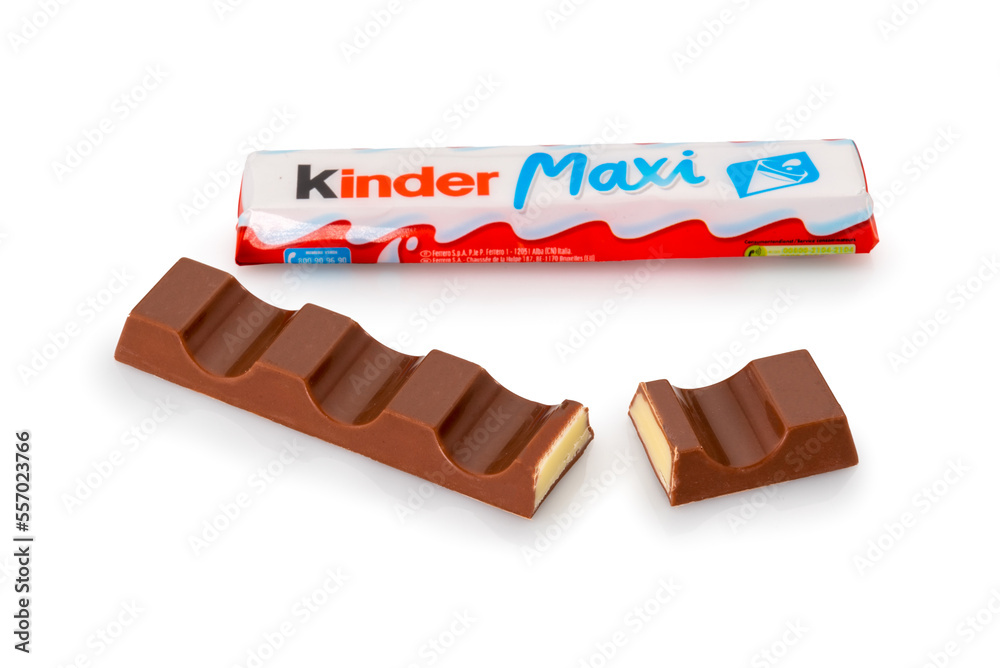 Alba, Italy December 28, 2022 Kinder Maxi Ferrero isolated on white