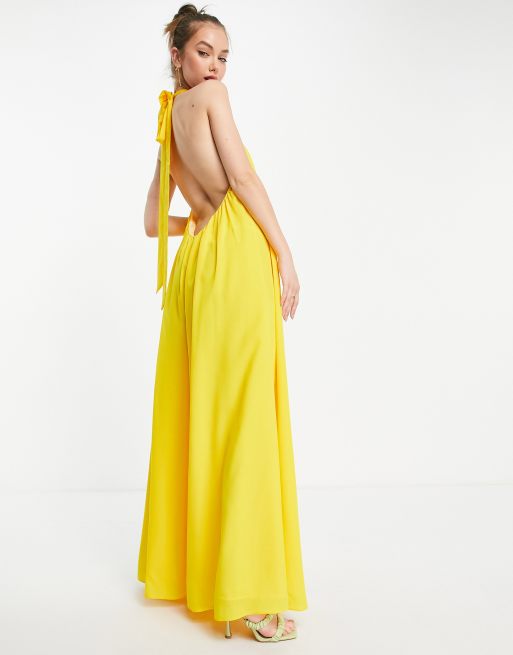ASOS DESIGN halter neck backless wide leg jumpsuit in yellow ASOS