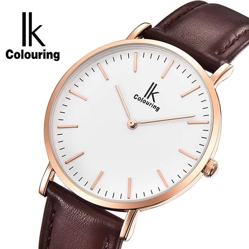 IK colouring Ultra Thin Minimalist Mens Watches Top Brand Luxury Genuine Leather Strap Fashion