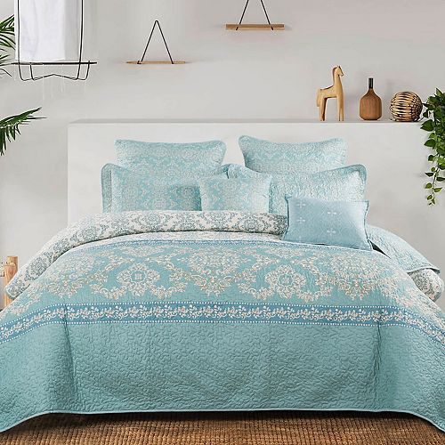 Mystic Turquoise Quilted 7Piece Bed Spread Set