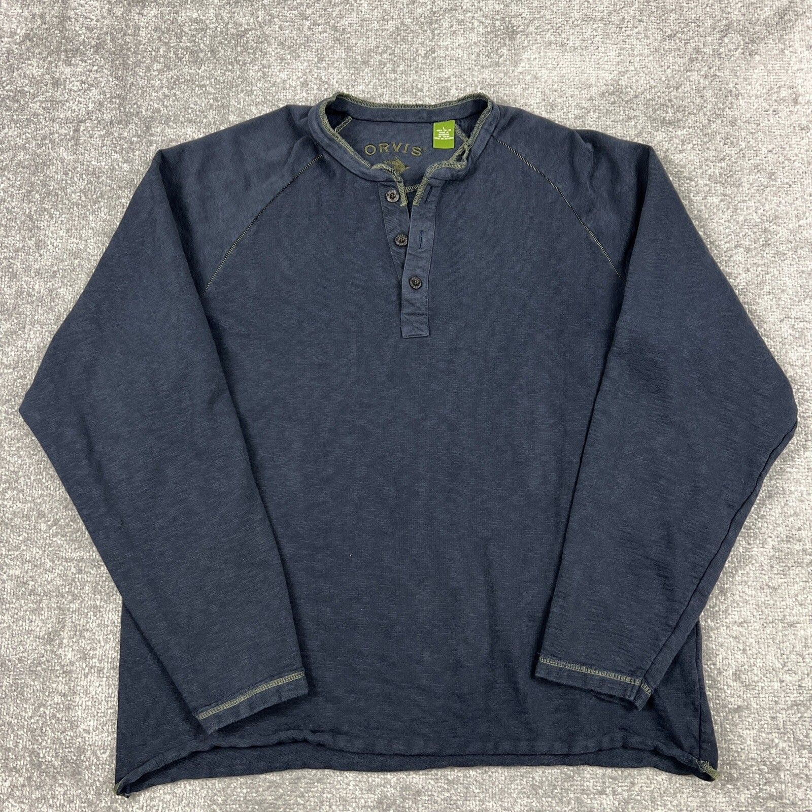 Orvis Mens Pullover Sweatshirt Heavy Cotton Henley Navy Blue 3 Button Sz Large eBay