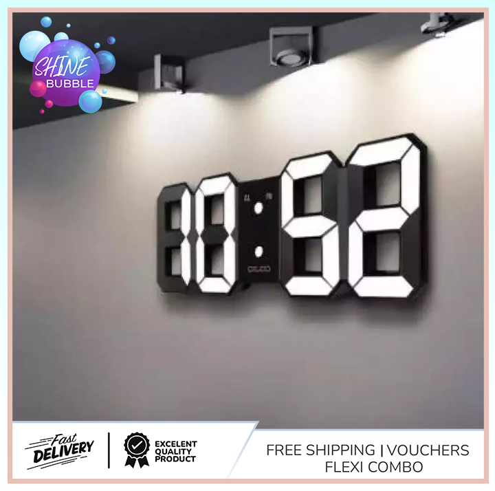 SHINE BUBBLE 3D digital clock with LED light, modern digital clock Digital Night Wall Clock juwacoo led digital wall clock with temperature display, 12large digital wall clock, alarm snooze function, adjustable. choose to mount it on the wall for a clean and streamlined look or use its sturdy kickstand for tabletop display. Digital Night Wall Clock.