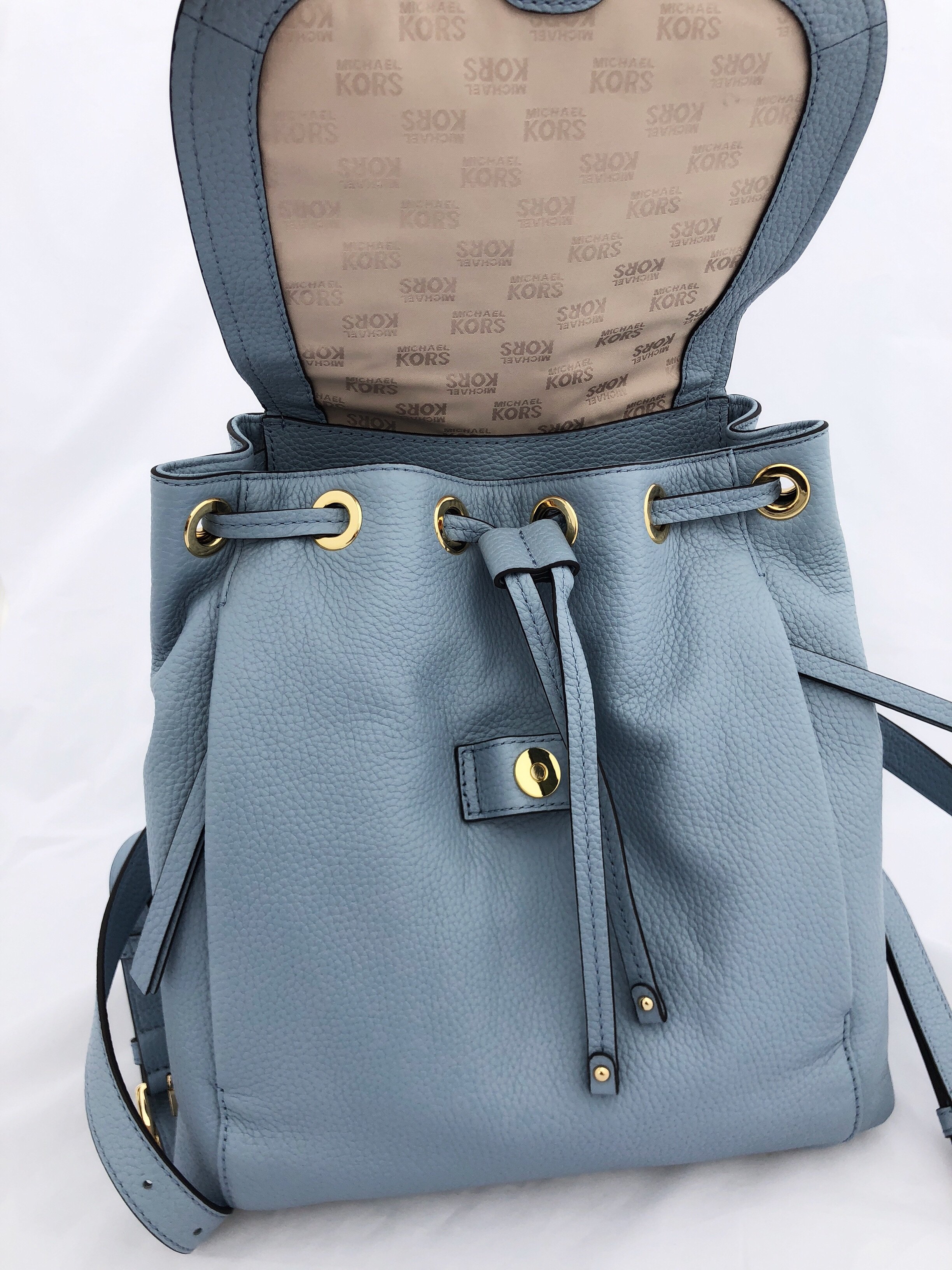 Michael Kors Riley Large Leather Backpack Pale Blue Gold Studded