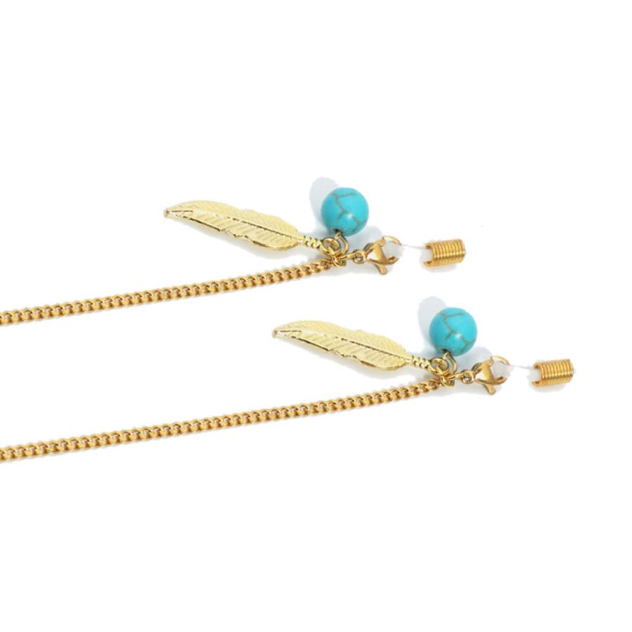 ゴールド チャーム 眼鏡 メガネ チェーン ストラップ GOLD アクセサリー フェザー GLASSES CHAIN ns00637
