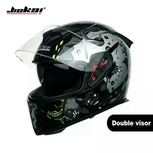 JIEKAI Double Lens Motorcycle Helmet for men Knight Full Face Motorbike Black Clown Shopee Jekai Helmets Jiekai helmets use imported 709 top abs! Jiekai new enhanced version adult motorcycle modular full face helmet flip up dual visor helmets dot approved Buy jiekai new enhanced version adult motorcycle modular full face helmet flip up dual visor sun shield motocross dot approved helmets: High strength abs shell, lightweight and impact resistance. Full face & filp up. Dual visor. Jekai Helmets.