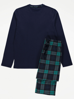 Teal Checked Fleece Pyjamas Gift Set Men at ASDA
