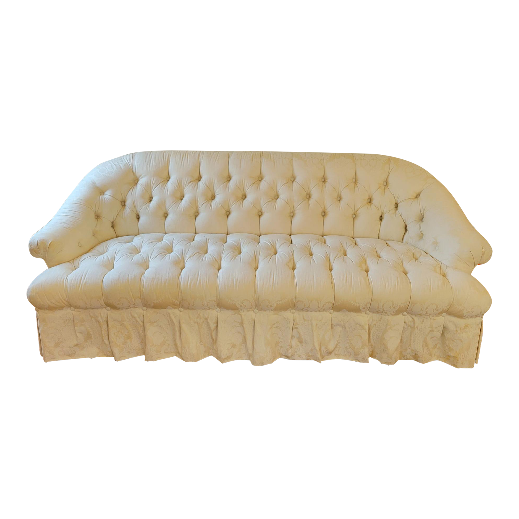 20th C Baker Furniture Cream Damask Button Tufted Sofa Chairish