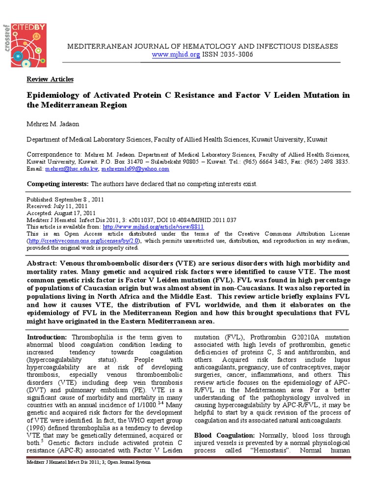 Jadaon 2011 Epidemiology of Activated Protein C Resistance and Activated Protein C And Factor V Leiden Results of activated protein c resistance testing to detect factor v leiden polymorphisms. The factor v leiden (f5) r506q mutation is associated with a genetic disorder 1 that has a solid phenotype and a poor response to activated protein c, 2 which. Factor v leiden (fvl) is the most common heritable cause of venous thrombosis. Panel a shows an overview. Activated Protein C And Factor V Leiden.