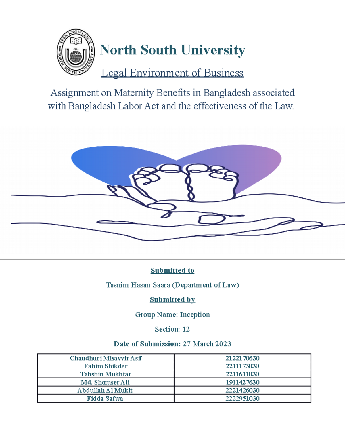 LAW Final Assignment on Maternity Benefits in Bangladesh associated